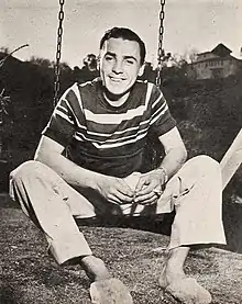 He managed a dairy store in his home town for a year and began taking night courses at the Art Institute of Pittsburgh. He went to see Burgess Meredith on stage in Winterset and Meredith advised him to study at Carnegie Tech University.[2] At Carnegie, Eythe appeared in over 80 plays.[1][3]