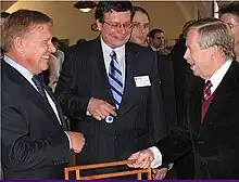 In addition to general preparations for the President's meeting with the Soviet Premier Mikhail Gorbachev, he and Dr. Alvin Trivelpiece were responsible for concluding an agreement with his Russian counterpart Academic Evgeny Velikhov on magnetic fusion cooperation that has since become the ITER (International Thermonuclear Experimental Reactor)[13] project as recognized in the concluding sentence of the communique of this historic meeting, "The two leaders emphasized the potential importance of the work aimed at utilizing controlled thermonuclear fusion for peaceful purposes and, in this connection, advocated the widest practicable development of international cooperation in obtaining this source of energy, which is essentially inexhaustible, for the benefit for all mankind".