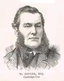 William Fowler (28 July 1828 – September 1905) was an English Liberal politician who sat in the House of Commons in two periods between 1868 and 1885.