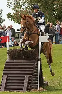 William Speed Lane Fox-Pitt MBE[1] (born 2 January 1969) is an English equestrian who competes in eventing. His career highlights include winning three Olympic medals in the team event, with silver in 2004 and 2012, and bronze in 2008.[2] At the World Equestrian Games, he won team gold and individual silver in 2010, and team silver and individual bronze in 2014. He also won World team medals in 2002 and 2006. At the European Championships, he has won six team gold medals, as well as Individual silver in 1997 and 2005, and Individual bronze in 2013. He is the recordman CCI*****'s winner with 14 grand slam titles. In 2011, he became the first rider to win five different five-star events,[3] having won the Burghley Horse Trials a record six times (1994, 2002, 2005, 2007, 2008 and 2011), Rolex Kentucky three times (2010, 2012, 2014), Stars of Pau twice (2011, 2013), the Badminton Horse Trials twice (2004, 2015), and the Luhmühlen Horse Trials once (2008). A serious fall in 2015 left him in a coma for two weeks, but he came back to make the British eventing team and attend the 2016 Summer Olympics. He was appointed Member of the Order of the British Empire (MBE) in the 2018 Birthday Honours.[4]