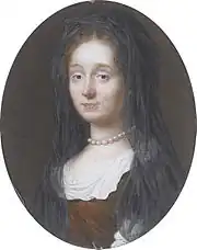 William Gibson was nephew of Richard Gibson, the dwarf, from whom he received instruction. He was also a pupil of Sir Peter Lely, and was very successful in his copies of Lely's works. He attained great eminence as a miniature painter, and was largely employed by the nobility. At the sale of Lely's collection of prints and drawings by the old masters, Gibson bought a great number, and added considerably to them by subsequent purchases. He resided in the parish of St. Giles-in-the-Fields, and died of a "lethargy" in 1702, aged 58. He was buried at Richmond in Surrey.[1]
