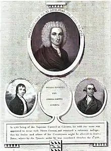 William Hay, engraving published 1794, with his sons Thomas and Henry, and note on his son William