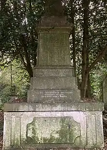 In 1828 he moved to Mauritius, arriving on the Winscales on 19 January 1829, where he ran a business as a watch seller and jeweler in Port Louis.[2] On 2 June 1832 at the Anglican Church of Port Louis he married Celia Pinch, daughter of John Pinch the elder an architect in Bath, Somerset. During June/July 1832 he was caught up in the slave rebellion on Mauritius with his shop coming under siege.[3] By 1841 William had amassed a considerable fortune and, with his family, had returned to England, residing at 21 Avenue Road, Regent's Park, London.[4]
