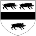 - ↑ The usual attitude of heraldic beasts is facing dexter; the boars are shown facing sinister on Huddesfield's tabard, but facing dexter on the brass escutcheon set into the ledger stone of his monument