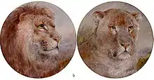 William Huggins was born in Liverpool. His parents were called Samuel and Elizabeth. He received his first instruction in drawing at the Liverpool Mechanics' Institution. He won a prize for "Adam's Vision of the Death of Abel" and successfully entered work to be shown at the Liverpool Academy of Arts whilst fifteen years old.[1] He drew from life using the classes at the Academy of Arts or by sketching the animals in Liverpool's zoo.[1] He travelled further afield to see exotic animals at the unusual Wombwell’s Travelling Menagerie.[5] His animal work was admired and compared to Stubbs. Huggins was magnanimous in acknowledging Stubbs' influence and this contrasts with a later comparison that was made with Landseer where Huggins felt insulted. Huggins pictures of exotic animals were much admired but they are noted for lack of background as Huggins never saw them in their own habitat.[6]