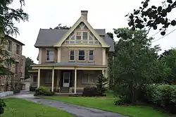 The William J. Greenman House is a historic home located at Cortland in Cortland County, New York. It was built in 1896, and based on a pattern book plan by architect George Franklin Barber. It is a 2½-story, Queen Anne-style frame dwelling. It is sheathed in clapboard and sits on a stone foundation. It features exuberant wood trim, decorative shingles and half-timbering; a wraparound porch with a circular section topped by a bell-shaped roof; and projecting bay windows. Also on the property is a contributing carriage house.[2]: 3