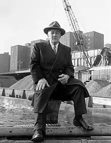 By the mid-1930s, Penn held a virtual monopoly on the stevedoring of all the perishable food shipped to the City of New York via the Pennsylvania Railroad. For almost thirty years McCormack was known as "Big Bill McCormack," or simply as the mysterious "Mr. Big" of the New York waterfront.[1] In the early 1950s, details of McCormack's relationships with International Longshoreman's Association President Joseph P. Ryan and various organized crime figures were revealed in a series of New York Sun articles by Malcolm Johnson entitled "Crime on the Waterfront." These articles, and the 1953 Waterfront Crime Commission hearings that followed, provided Elia Kazan with the factual background for his classic 1954 film On The Waterfront.[2]