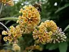 Working in the nursery of his home, Smedmore House, Corfe Castle, he crossed B. globosa with B. davidii, naming the new hybrid Buddleja weyeriana. The initial F1 progeny were aesthetically poor, but Weyer persevered, back-crossing them to produce more strongly coloured F2 plants from which he made two selections he named 'Moonlight' and 'Golden Glow', which remain in commercial use to this day.[1] Over half a century later, 'Sungold' was raised from a sport of 'Golden Glow' in the Netherlands, and was used in hybridization experiments in the USA, leading to the release of small, sterile Buddlejas such as 'Blue Chip'.