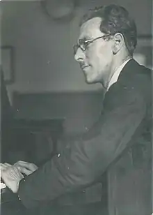 Though William Lovelock was born in London, his family were originally of Berkshire extraction and two of his great-uncles had emigrated to Australia in the 19th century, long before he did.[2] He was educated at Emanuel School, Wandsworth, and started piano lessons at the age of six and organ lessons at twelve. At the age of sixteen, he won an organ scholarship to the Trinity College of Music, where he studied with C. W. Pearce and Henry Geehl. After service as an artilleryman in World War I, he returned to Trinity College and graduated with a Bachelor of Music degree in 1922. He then joined the teaching staff and later obtained a doctorate in composition in 1932. As an organist, he served at St. Clements in Eastcheap from 1919 to 1923, then as Kapellmeister to Countess Cowdray from 1923 to 1926. He was also organist at the Church of the Good Shepherd in Carshalton from 1928 to 1930.