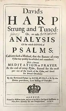 - David's Harp Strung and Tuned: Or, An Easy Analysis of the Whole Book of Psalms, 1662.
