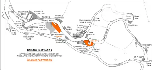 William Patterson Shipbuilders was a major shipbuilder in Bristol, England during the 19th century and an innovator in ship construction, producing both the SS Great Western and SS Great Britain, fine lined yachts and a small number of warships.[1]