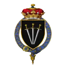 ![]() Arms of William Paulet, 1st Marquess of Winchester, KG: Sable, three swords pilewise points in base proper pomels and hilts or | |