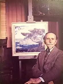 In 1911 Silva purchased property in Carmel-by-the-Sea, California, and established a summer studio; a year later he and his family occupied a home there on Carmelo Street.[1] He established the Carmelita Art Gallery.[3][10] Although he did not exhibit in 1915 at San Francisco's Panama–Pacific International Exposition, he did win silver medals at the Panama-California Exposition in San Diego. His paintings were frequently seen on the Pacific, especially in southern California, with group and solo exhibits between 1914 and the 1930s at the Los Angeles Museum, Blanchard Gallery, Friday Morning Club of Los Angeles, Kanst Gallery, Ebell Club of Los Angeles, Cannell & Chaffin Galleries, and Pasadena Art Institute.[1] He was an exhibiting member of the Carmel Arts & Crafts Club from 1913 to 1923 and habitually exhibited at the Carmel Art Association between 1939 and 1947. He and his wife were socially active in Carmel where he helped paint sets for the Forest Theatre, served on the Fire Commission, took legal action to preserve the town's old-growth trees, joined the Carmel Pistol Club, became a vocal proponent of Prohibition, and attempted to ban the local chapter of the John Reed Club.[1]