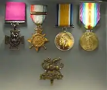 His Victoria Cross was on display at The Buffs Regimental Museum, Canterbury, England. With the rest of that museum's collections, it has now been transferred to the National Army Museum, where it is now displayed.[5]