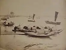 Saunders' success was built upon the production of photographic albums of Chinese landscapes and genre studies.[11] A selection of William Saunders' photographs was published in an early series of 50 prints published before 1871 as a Portfolio of Sketches of Chinese Life and Character.[12] While all other extant copies of this portfolio contain 50 images, a unique copy of the portfolio containing more than 70 photographs was acquired in Sweden by collector Stephan Loewentheil.[13] Saunders contributed regularly to publications such as the Far East and the Illustrated London News.[14] He also photographed local ports in China and Japan, including Yokohama where he settled for three months in August 1862 and assembled a portfolio of approximately 90 images during his time there.[15]