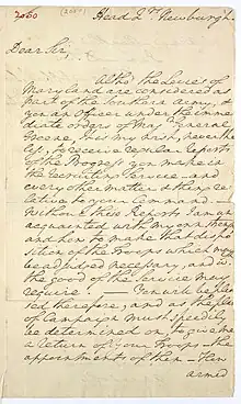 A July 1782 letter from George Washington to Smallwood asking for an update on Continental Army troop recruitment