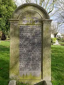 - ↑ "William Taylor". Billiongraves.com. Retrieved 5 April 2014.