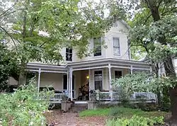 William Thomas O'Brien House is a historic home in Durham, Durham County, North Carolina. It was built about 1890, and is a two-story, Gothic Revival style frame dwelling. It has a center hall plan and features a one-story wraparound porch, an original embossed tin shingle roof, and projecting bays. It was the home of William Thomas O'Brien, who perfected the Bonsack machine for the W. Duke Sons & Company.[2] The house originally sat on a large tract of land that extended to Rome Street.[3] The property included a servants' house, a smokehouse, and a chicken coop.[3]