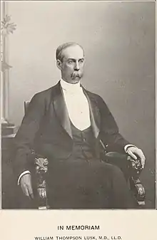 - 1 2 3 4 5 6 7 8 9 10 "Death of Mr. WM. T. Lusk; He Was President of the Bellevue Hospital Medical College" (PDF). New York Times. June 13, 1897. p. 2. Retrieved July 27, 2009.