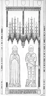 His monumental brass and chest tomb in the Church of St Mary, Ilminster is said by William Henry Hamilton Rogers to depict him with his mother Joan Wrottesley, daughter of Sir William Wrottesley of Blore and Joan Bassett of Drayton Bassett, both in Staffordshire. It is among the best surviving brasses from the fifteenth century, and depicts him in complete plate armour exported to England by Milanese armorers; the finest of the period. His mother is wearing 'widow's weeds'.[4]