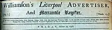 Williamson's Liverpool Advertiser was the first successful newspaper published in Liverpool.[1] A previous newspaper had been founded in 1712, but it failed after two years. However, on 28 May 1756, Robert Williamson, a local printer, launched Williamson's Liverpool Advertiser.