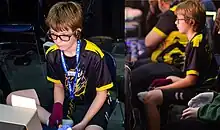 Willis Gibson, known professionally as Blue Scuti, is an American professional Tetris player from Stillwater, Oklahoma. At 11 years old, Gibson became interested in the game from YouTube.[1] He eventually decided to pursue the game competitively and began participating in Tetris tournaments, including the Classic Tetris World Championship in 2023, where he placed third. He would gain international attention when on December 21, 2023, he became the first person to "beat the game" after getting to the previously unreached level 157 and triggering a killscreen. He is currently regarded as one of the best Tetris players in the United States.[1][2]