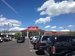 The Willow Grove Park Mall is located on the site of the previous Willow Grove Amusement Park in the census-designated place of Willow Grove in Abington Township, Montgomery County, Pennsylvania, 15 miles (24 km) north of Center City Philadelphia in the northern suburbs of the city. The mall is bordered by Pennsylvania Route 63 (Moreland Road) to the northeast, Easton Road to the southeast, and Old Welsh Road to the southwest.[4] The mall is located near Pennsylvania Route 611 and is a little more than a mile from the Willow Grove exit of the Pennsylvania Turnpike.[5] The Willow Grove Park Mall serves as a transit hub for SEPTA bus routes 22, 55, 95, 310, and 311. The mall is also near the Willow Grove station on the Warminster Line of SEPTA Regional Rail.[6] The Willow Grove Park Mall has a market area that covers eastern Montgomery County along with Northwest Philadelphia, North Philadelphia, Northeast Philadelphia, and portions of central Bucks County.[5]