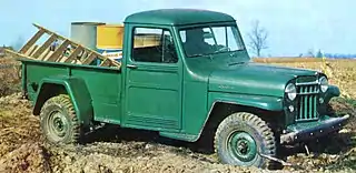 The Jeep Truck was introduced in 1947 as a 1-ton four-wheel drive truck with a wheelbase of 118 inches (2,997 mm). It was available as a pickup truck, a platform stake truck, a chassis cab, or a bare chassis. A ¾-ton two-wheel drive version became available by 1949.[1]