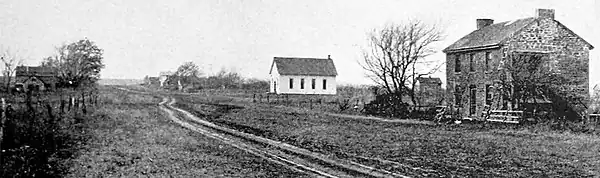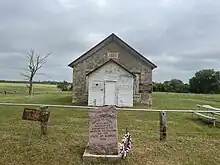 A post office was opened in Wilmington in 1857 and a stone church and school opened in 1870. Wilmington initially hosted 30 houses, two stores, a blacksmith, two doctors, a wagon shop and a hotel. The town met it's demise when the Manhattan, Burlingame & Alma Railroad was built through Harveyville. Shortly after many businesses moved away and the population dwindled. The post office closed in 1906 and by 1910 the population had fallen to 69. The school closed in 1950 and still stands today.[3]