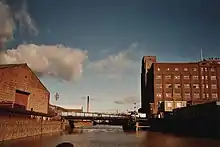 - ↑ Rishworth, Ingleby & Lofthouse Ltd. had Swan Mill built 1897 onwards.[23] Capacity was doubled by the First World War. In 1921 the company merged into Spillers. The mill was badly damaged during the Second World War. Reconstruction of the mill took place from 1948–53, including a reinforced concrete silo.[24][25]