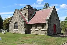The cemetery's chapel, designed by architect Elijah Dallett Jr.,[4] was built in 1913 of Foxcroft stone with window sills of Indiana limestone.[5]
