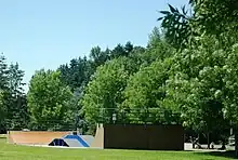 Wilsonville purchased the Boozier property at the north end of the park in 1993, land totaling 22 acres (8.9 ha).[12] City voters rejected a $940,000 bond measure in 1995 that would have added more athletic fields to the park along with an amphitheater.[13] In 1996, a Boy Scout Eagle Project re-opened the community garden at Memorial Park after the original garden program ended in the 1980s due to lack of interest.[14] Later in 1996, a full-size and half-size basketball courts were added to the park after donations by Nike and Hollywood Entertainment, who both had large operations in the city at that time.[15] In April 1998, the city approved adding a skatepark at Memorial Park north of the tennis courts.[16] The skatepark opened in 2000,[17] paid for in part by private donations.[18]