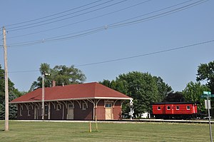 While the number of freight trains passing through town numbered five or six by 1947, the number of passenger trains declined to one local Chicago to Des Moines train, westbound-only in 1953.[4] The station was finally dropped from passenger timetables in 1954.[5] The depot received part-time freight service from 1963 to 1974, when the depot closed.