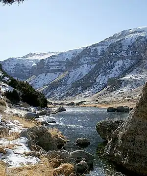 Wind River Canyon is a scenic Wyoming canyon on the Wind River.[1] It is located between the towns of Shoshoni and Thermopolis and is a popular stop for visitors to Yellowstone National Park. It is accessible by U.S. Highway 20 and Wyoming Highway 789. It was designated as a Wyoming Scenic Byway in 2005.[2]