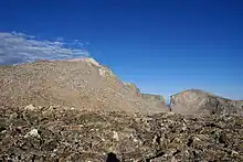 Wind River Peak (13,197 feet (4,022 m)) is the highest point in the southern end of the Wind River Range that is located in the U.S. state of Wyoming. The peak straddles the Continental Divide and is surrounded by National Forest lands.[3] The west slopes are in the Bridger Wilderness of Bridger-Teton National Forest, while the east side is in the Popo Agie Wilderness of Shoshone National Forest. In a cirque on the northeast slopes of the peak lies Wind River Glacier.[3]