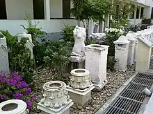 Part of the National Stadium complex was established as the Central Physical Education School, which later became part of Srinakharinwirot University's Faculty of Physical Education. Ownership of these buildings was transferred to Chulalongkorn University's School of Sports Science when their lease expired in 1997. Later during renovations by Chulalongkorn University, fragments of marble columns and statues were discovered, and it was concluded that they originated from the palace structure. These are now on display at the School of Sports Science.[10] Numerous marble fragments have also been found within the site of the National Stadium, but have been left lying around as debris. There have been calls for formal excavation and cataloguing, but no substantial developments have yet emerged.[7]