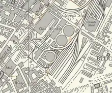 The Windsor Street site was chosen for its proximity to the Aston locks on the Birmingham and Fazeley Canal which would allow for the easy import of coal and export of by-products such as coke, which was used as a smokeless domestic and industrial fuel.[1][2]: 10 By 1864 the site had three retort houses for coal gasification and four gasholders for storage. By 1872 the site had another retort house and 11 gasholders (with a total capacity of 3,568,000 cubic feet, 101,000 m3) as well as 20 gas purifiers.[2]: 10