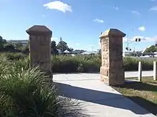 The quarry face to the western side dominates the park. This sheer rock wall is topped by a brilliant splash of bougainvillea, which adds to its landmark qualities. It rises abruptly from a level grassed area. A path runs throughs the park on a north–south axis. Recently constructed sandstone clad gateposts mark the entrance from Lutwyche Road. Bedded out plantings edge the park along Lutwyche Road and there are also plantings of ornamental trees scattered about the park.[1]