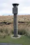 Two memorial cairns on the hill are known as Wilder Lads or Two Lads. There was a large third cairn built in the 20th century, the remains of the originals are nearby. The site was originally known as 'Wilder Lads', originally united by a circular mound. The cairns height had been increased by a landowner, noted by local historian Thomas Hampson in 1883, at the time the cairns were thought to be Saxon.[8] Hampson described the original Two Lads as the graves of two children of a Saxon king, Edgar, and recorded that Winter Hill was previously known as Edgar Hill.[6] A legend exists that the cairns mark the site on which two boys lost their way on the moor and died of exposure in a snowstorm.[9] In 1953/54 John Winstanley, Archaeologist had recorded roman finds near this site, he concluded the site was once a Roman encampment. Flint chippings were found indicating much earlier use of this site.[8]