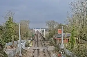 - ↑ Butt, R. V. J. (October 1995). The Directory of Railway Stations: details every public and private passenger station, halt, platform and stopping place, past and present (1st ed.). Sparkford: Patrick Stephens Ltd. p. 252. ISBN 978-1-85260-508-7. OCLC 60251199. OL 11956311M.