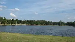 Wintersmith Park is located on the southeastern edge of Ada. It is south of 18th Street, east of Scenic Drive and west of Country Club Road. The park contains 150 acres (0.61 km2) of land, Wintersmith Lake, a public swimming pool and splash park, a lodge, courts for basketball, softball, volleyball and horseshoes, a 1.5-mile (2.4 km) lighted trail, eight picnic pavilions, a playground, a dog park, and a Kiwanis amusement park as well as bridges, trails and a public amphitheater.