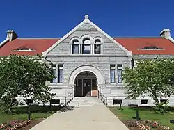 The Winthrop Street Historic District is located on Augusta's west side, with portions of Winthrop and State Streets as its major through streets. The district extends west and south from the junction of these two roads, also including properties on side streets extending to the north of Winthrop and the east of State. It is roughly bounded on the southwest by properties on Green, Chapel, Court, and Chestnut Streets. It is about 100 acres (40 ha) in size, and includes 193 historic buildings. Ten of these have been previously listed individually on the National Register: the Fuller-Weston House, the Tappan-Viles House, the Gov. John F. Hill Mansion, the All Souls Church, the Dr. J.W. Ellis House, the Kennebec County Courthouse, the library, the Lot Morrill House, and the South Parish Congregational Church and Parish House. Stylistically, the buildings in the district range from the Federal period to the Colonial Revival, with fine examples of late Victorian residential architecture included. The size and scale also vary, from the grand Hill Mansion to more modest Federal period houses.[2] The district was enlarged in 2008 by the addition of a single house, the 1830s Federal style house of merchant George Morton at 20 Spring Street.[3]