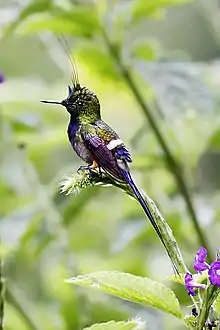 The wire-crested thorntail (Discosura popelairii) is a hummingbird in the "coquettes", tribe Lesbiini of subfamily Lesbiinae. It is found in humid forests in the Andean foothills of Colombia, Ecuador, Peru, and possibly Bolivia.[3][4][5]