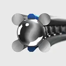 A wire race bearing is a rolling-element bearing, where the balls or rollers run on races resembling loops of wire. Roller bearings may use just two races, but ball bearings typically use three or four races. Wire race bearings can be large yet lightweight and with small profile and good precision. Wire races have little intrinsic structure and must be adequately supported by the bearing housing. Balls, rollers or even cross rollers are used as rolling elements. Due to the design wire race bearings are commonly called '4-point-contact' bearings.[1]