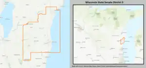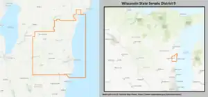 - ↑ "Wisconsin Legislative Districts - Senate District 9 Boundaries". Wisconsin Legislature. Retrieved March 5, 2021.