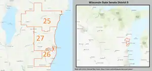 - ↑ "Senate District 9". Wisconsin Legislature. Retrieved March 5, 2021.