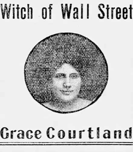 - ↑ "Grace Courtland Witch of Wall Street". Muskogee Times. May 18, 1906. p. 6. Retrieved February 5, 2023.