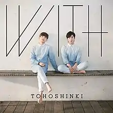 With (stylized in all caps) is the eighth Japanese studio album (fifteenth overall) by South Korean pop duo Tohoshinki, released by Avex Trax on December 17, 2014. The record was released in four physical versions – Version A, a CD+DVD version with music videos and live performances; Version B, another CD+DVD version with off-shot movies; Version C, a CD only version with two bonus tracks; and Version D, a fan club limited edition with a CD-Extra.[1] Recording and writing for the album roughly began in the summer of 2013. With is described to be an album composed of nostalgic dance-pop songs that are influenced by disco and jazz, accompanied by marching drumbeats. Its lyrical content explores the general concept of love and friendship.