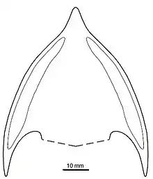 Wladysagitta is relatively small in size compared to other osteostracans. The headshield of the holotype is around 40–60 mm (1.6–2.4 in) long and approximately the same in width, though slightly larger specimens do exist.[2]