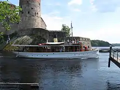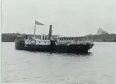 Crichton wanted to extend the company portfolio to complete vessels.[10] The company's first ships were not built in Turku but delivered in parts to Vähä-Äiniö yard at lake Päijänne, 230 km away from Turku. The ships were paddle steamers built by local craftsmen under supervision of specialists sent by Crichton. The first one, named Ensimmäinen ("first") was powered by a small, 12-hp engine and handed over in 1863. The subsequent Toinen ("second") was delivered in the following year and had a 25-hp engine. Both ships were intended for log tugging. Three more ships were built at Vähä-Äiniö yard: passenger ships Seura, which was a 28.8 metres long, and 33.7-metre Lahtis were both paddle steamers and handed over in 1864. In 1866 the Imperial Russian Army ordered Knyas Aleksei, a propeller equipped ship for Päijänne transportation.[11]